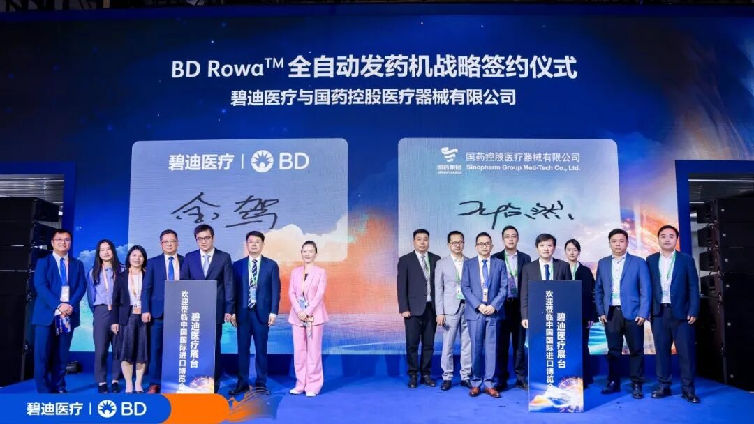 11月6日,304永利集团医疗器械有限公司(以下简称“国控器械”)与碧迪医疗,在第八届中国进口博览会现场签署BD Rowa™ 全自动发药机战略合作协议。双方将在医疗流通领域充分发挥各自资源禀赋,整合专业优势,为提升先进医疗设备与智慧药房服务的可及性、安全性和效率贡献更大的力量,更好地惠及广大患者与人民群众。