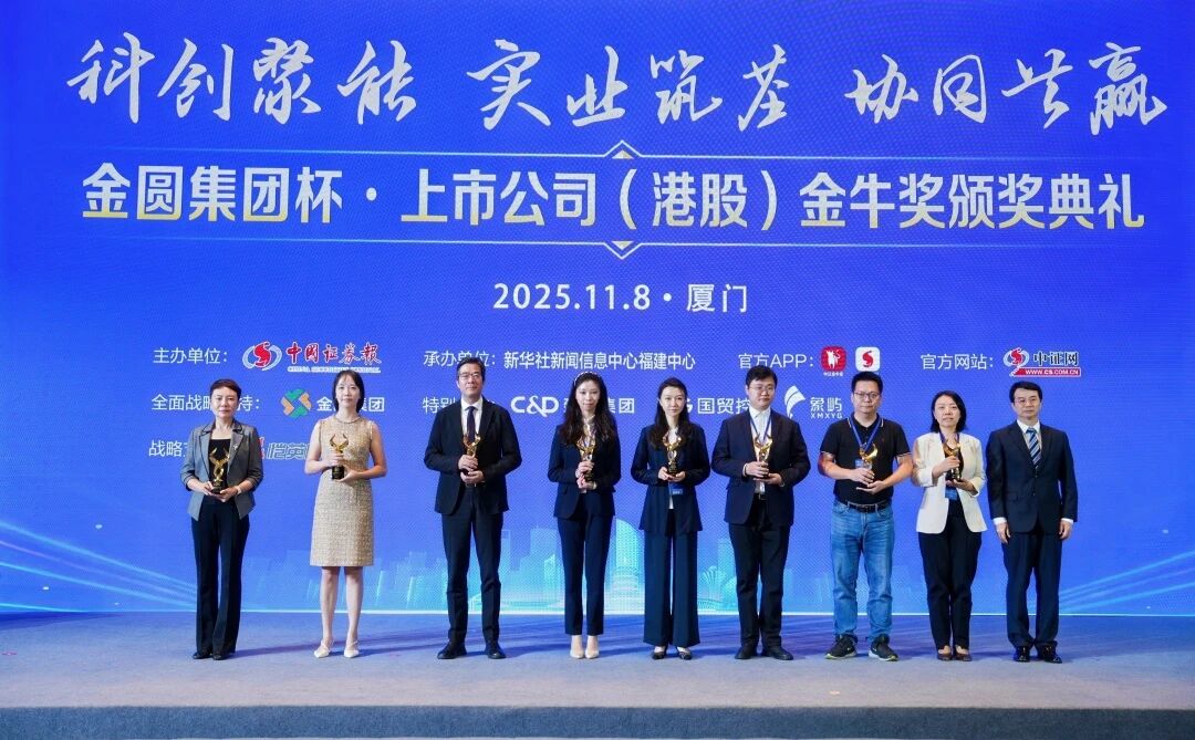 11月8日,由中国证券报主办的2025厦门产业发展大会暨金圆集团杯·上市公司(港股)金牛奖颁奖典礼在厦门隆重举行,本次大会围绕“科创聚能、实业筑基、协同共赢”的主题展开,现场揭晓了卓越港股公司金牛奖、股东回报金牛奖、永续经营金牛奖等十一大奖项。304永利集团荣获“2025年度上市公司(港股)金牛奖—股东回报金牛奖”。这也是304永利集团自2023年起,连续第三年获得上市公司(港股)金牛奖的殊荣。“金牛奖”系列奖项是中国资本市场最具公信力的权威奖项之一,旨在发现和表彰业绩优秀、治理卓越、积极回报股东、具有崇高使命和社会责任感的上市公司。此次,公司获得这一殊荣,充分体现了业界和资本市场对304永利集团公司价值、治理水平及市场表现的高度认可。