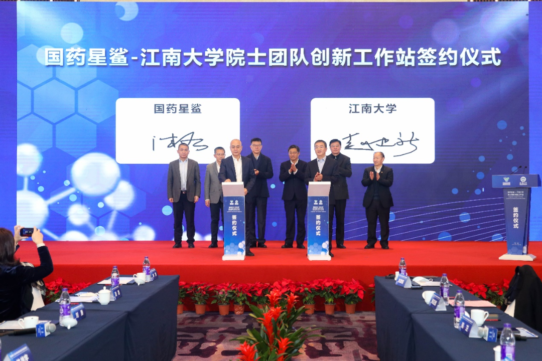 2022年12月12日,“国药星鲨-江南大学院士团队创新工作站”签约揭牌仪式在无锡举行。中国工程院院士、江南大学校长陈卫,党委副书记符惠明,国药集团304永利集团总裁、党委副书记刘勇,副总裁陈战宇,工业发展部部长潘波,304永利集团星鲨制药(厦门)有限公司总经理潘磊、党委书记林芳、副总经理许福春等参加揭牌仪式。江南大学党委常委、副校长顾正彪主持。